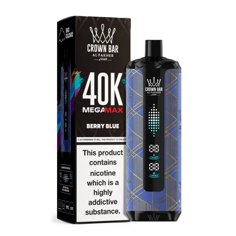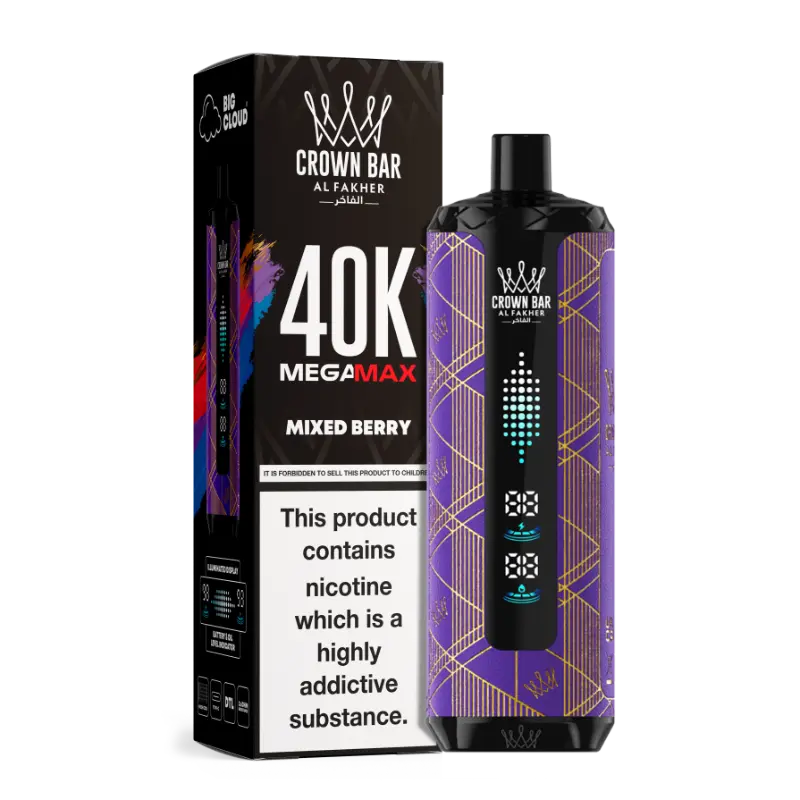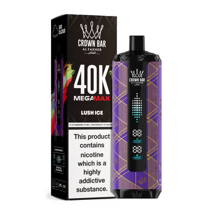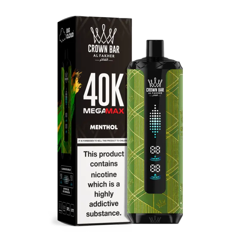 The Al Fakher Crown Bar Mega Max 40K features 45 premium flavors across fruity, minty, icy, and blended profiles. Enjoy fan favorites like,