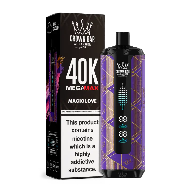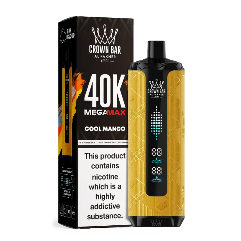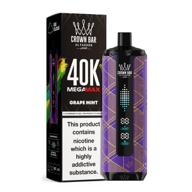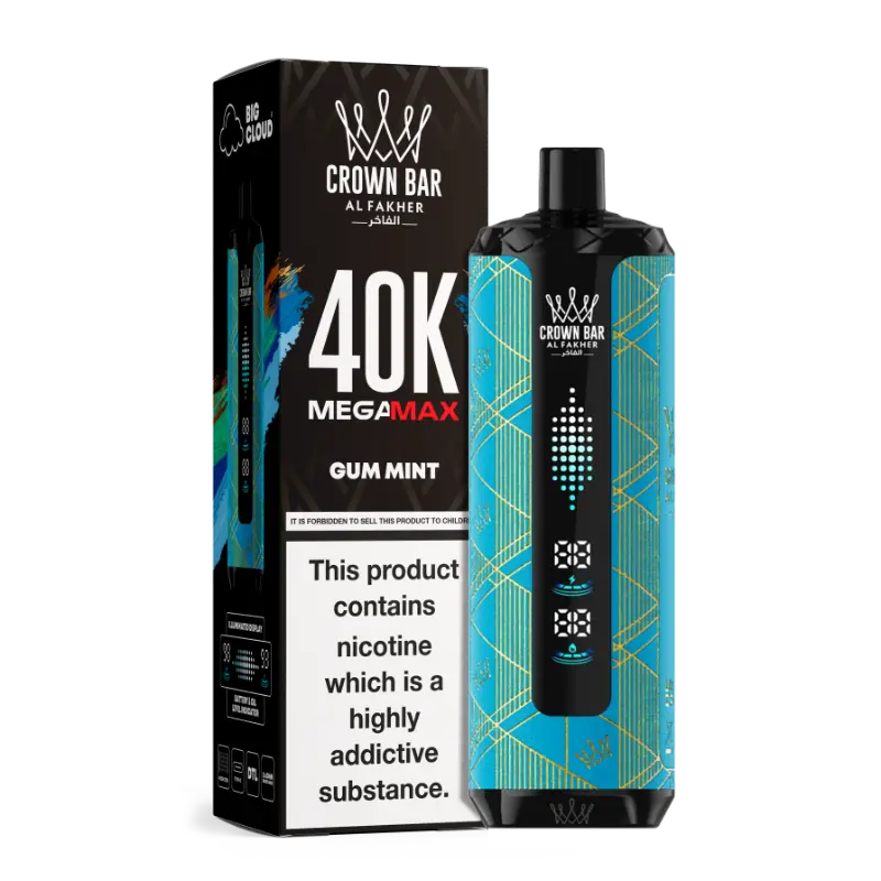 6mg/ml Nicotine Salt: Al Fakher Crown Bar Mega Max 40K Provides a smooth, mild throat hit, ideal for regular use.