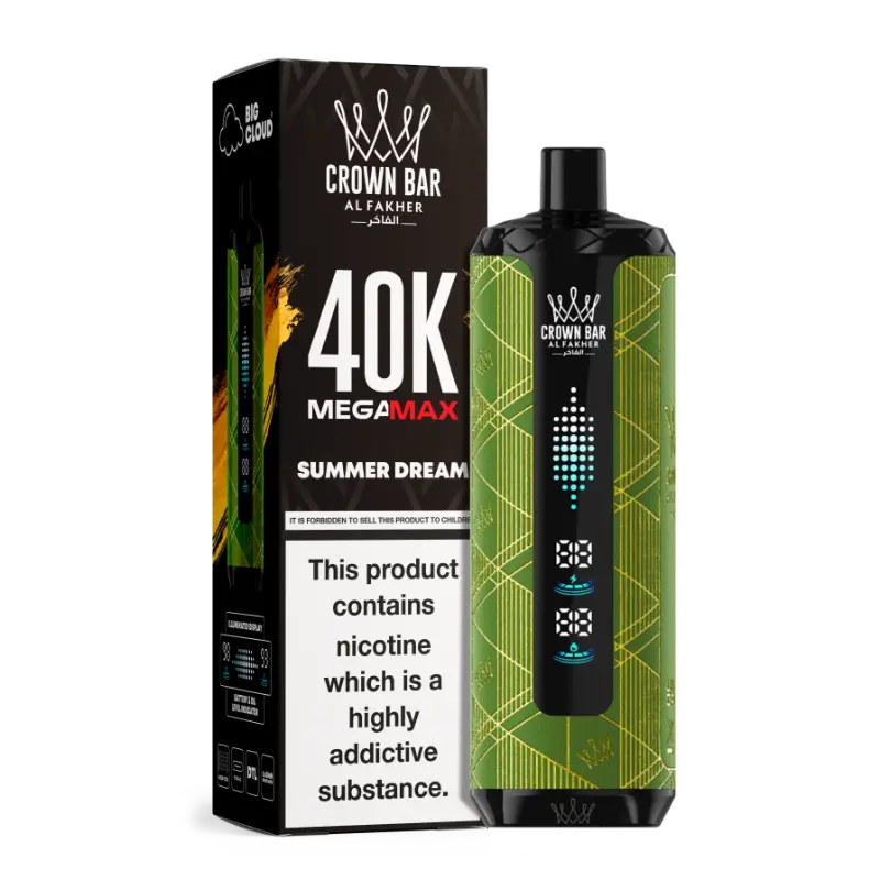 The Al Fakher Crown Bar Mega Max 40K delivers a long-lasting disposable vaping experience with smooth nicotine delivery and consistent flavor. Built for durability and effortless use, it’s ideal for daily vapers in Dubai seeking a hassle-free device. With mesh coil technology, a 30ml e-liquid capacity, and an illuminated indicator system, the Mega Max ensures balanced flavor, smooth vapor, and reliable performance throughout its lifespan.