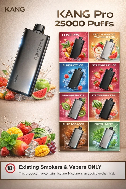 If you want long-lasting performance, premium flavors, and easy usability, The Kang pro 25000 puffs is perfect for you. The advanced mesh coil of Kang pro 25000 puffs ensures flavorful puff, the rechargeable battery keeps your vaping device running until the e-liquid is fully used. The high puff count of Kang pro also makes a cost-effective and convenient option compared to standard disposables.