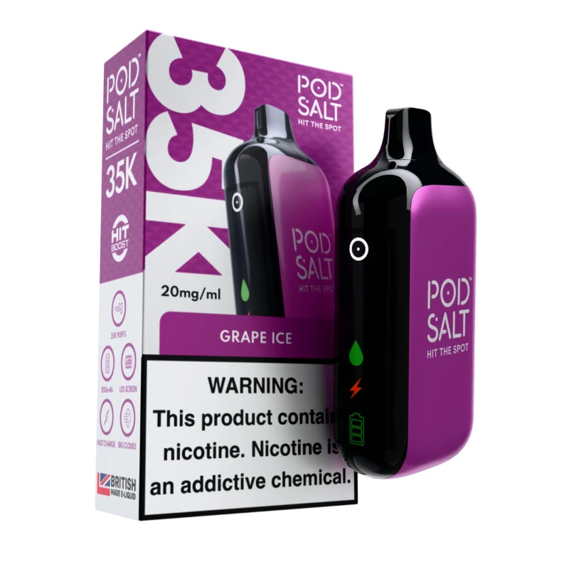 The Pod Salt Disposable Device delivers 20mg (2%) nicotine salt, offering smooth and satisfying hits with minimal harshness. This vape is perfect for smokers switching to vaping or adult vapers. It gives consistent nicotine delivery for all 35,000 puffs. This ensures a reliable and enjoyable vaping experience.