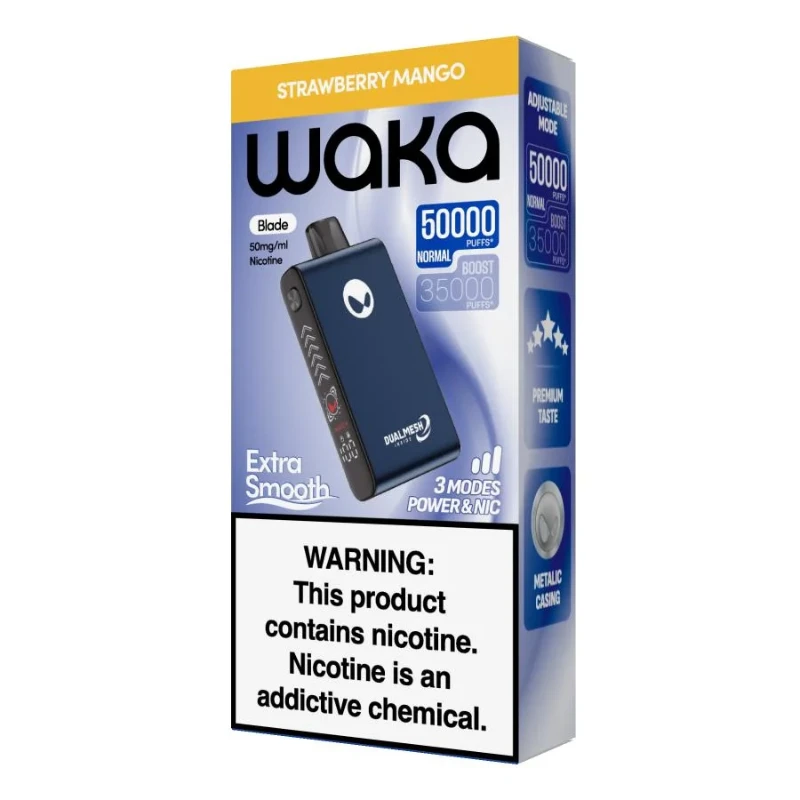 The WAKA Blade 50K Puffs 50MGÂ Disposable Vape combines extended puff capacity with reliable performance and steady flavor delivery. With up to 50,000 puffs, advanced coil construction, and a high-capacity rechargeable system, it supports prolonged daily vaping with consistent results.